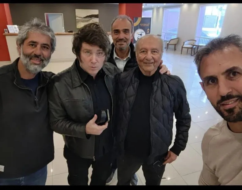Adrián Menem, Eduardo Menem, Lule Menem y Martín Menem con Javier Milei.